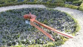 Imagen de la aguja doblada del reloj floral de los jardines. / carlos pardellas