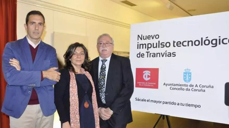 Contreras, la concejal Begoña Freire y el consejero de Tranvías, Wenceslao López, ayer en el acto. / n. cerqueiro