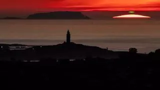 La fotografía, sacada desde Pontedeume y publicada en sus redes sociales, se ha vuelto viral en cuestión de horas. En ella se alinean, con precisión milimétrica, tres elementos icónicos: las bateas de Lorbé en primer plano, la Torre de Hércules y las islas Sisargas al fondo y, justo al ponerse el sol, un destello verde que corona el horizonte. «Esa foto con ese encuadre solo se puede hacer durante tres días en otoño y tres en primavera», explica Couce. «El sol cambia de posición cada día, y para que salgan todos los elementos en la misma línea, hay una ventana muy pequeña»