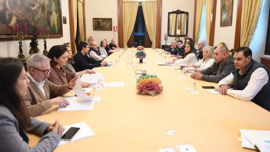 La alcaldesa, en el Concello con los hosteleros de María Pita. | C. P.