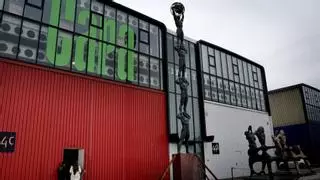 La escultura a los Hermanos de la Lejía, en la sede de la fundición. | José Luis Roca