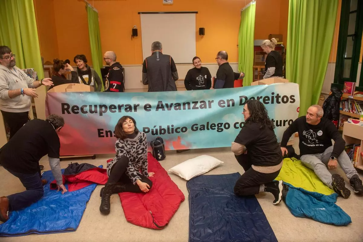 Las reclamaciones de profesoras y profesores para conseguir mejoras, como la bajada de la ratio en todas las etapas educativas, siguen vigentes en este 2026. Tras cinco jornadas de huelga el trimestre pasado, convocadas por CIG y STEG, los profesionales han vuelto a alzar la voz ante la falta de soluciones por parte de la Xunta. Esta vez el refugio en A Coruña fue el colegio Concepción Arenal, donde decenas de personas van a pasar la noche en señal de protesta, al igual que en otros centros de Galicia.