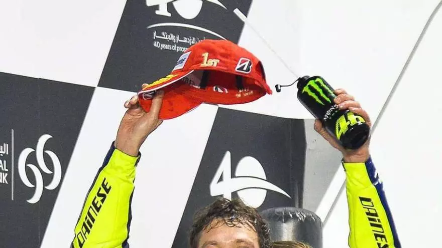 Valentino Rossi festeja su victoria en el Gran Premio de Catar de MotoGP. / stringer