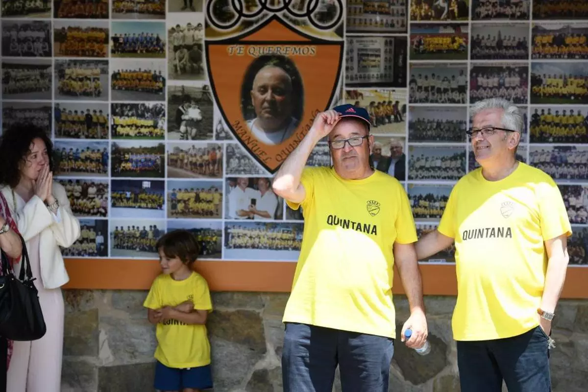 Dirigentes de diversos clubes modestos de A Coruña, de As Mariñas estuvieron acompañando a Quintana en su día. También la AFAC (Asociación de Fútbol Aficionado de A Coruña) estuvo representada a través de Juan Vázquez, a su vez presidente del Victoria. Fue una jornada festiva en Elviña aldea, que se entregó a un hombre de "Ponte da Pedra", como él mismo dice, que dedicó 53 años de su vida a una entidad que cumple 73. Llegó en 1964 "el último año de juveniles", como él recuerda, y desde entonces ya no se marchó. Jugó, entrenó, hizo fichas, hizo de delegado, fue utillero... lo fue todo durante 53 años. Algo que los que lo conocieron y conocen quisieron agradecerle.