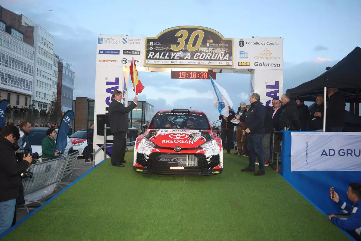Cientos de espectadores deseaban escuchar el rugido de los motores, oler la gasolina y sentir el neumático quemado sobre el asfalto de O Parrote y el entorno del castillo de San Antón. Este viernes arrancó la trigésima edición del Rally de A Coruña, la primera que se celebra como parte del Tour European Rally (TER), y lo hizo con un éxito de afluencia. Más de 50 vehículos, entre coches de competición oficial y de la modalidad de leyendas, se dieron cita para recibir la bendición de las banderas España y de Galicia y los aplausos del público antes de afrontar el primer tramo cronometrado dentro de la ciudad.