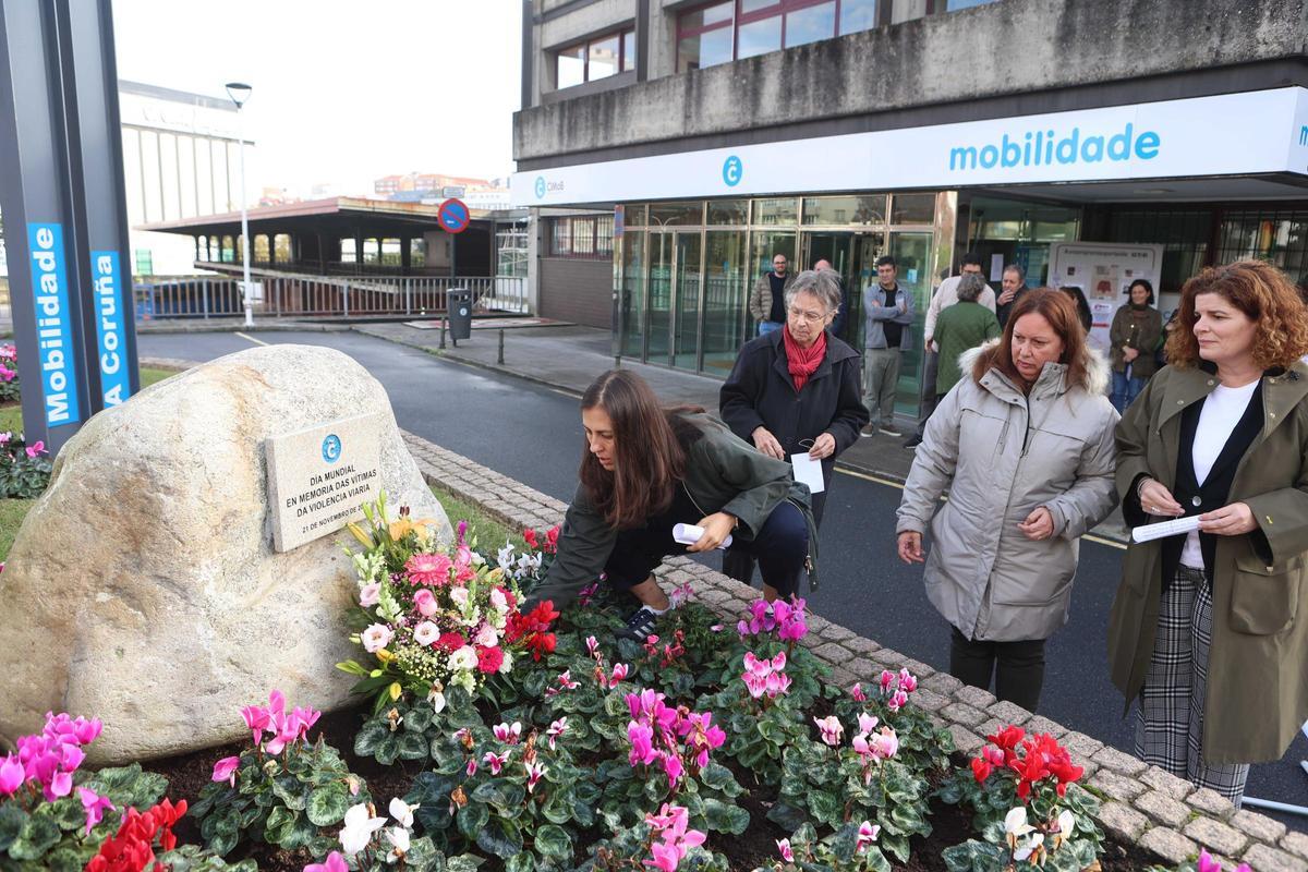 Las víctimas de la violencia viaria han sido recordadas este viernes con una concentración frente a la estación de autobuses de A Coruña en la que se guardó un minuto de silencio y se realizó una ofrenda floral.
