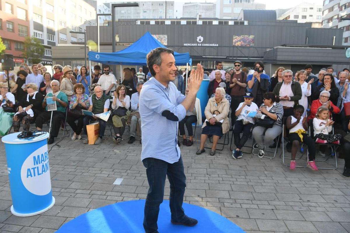 El alcalde de A Coruña y candidato a la reelección por Marea Atlántica, Xulio Ferreiro, acudió al entorno del mercado de As Conchiñas para participar en un acto de campaña seguido por numerosos ciudadanos. La edil Silvia Cameán, entre los participantes en este encuentro electoral