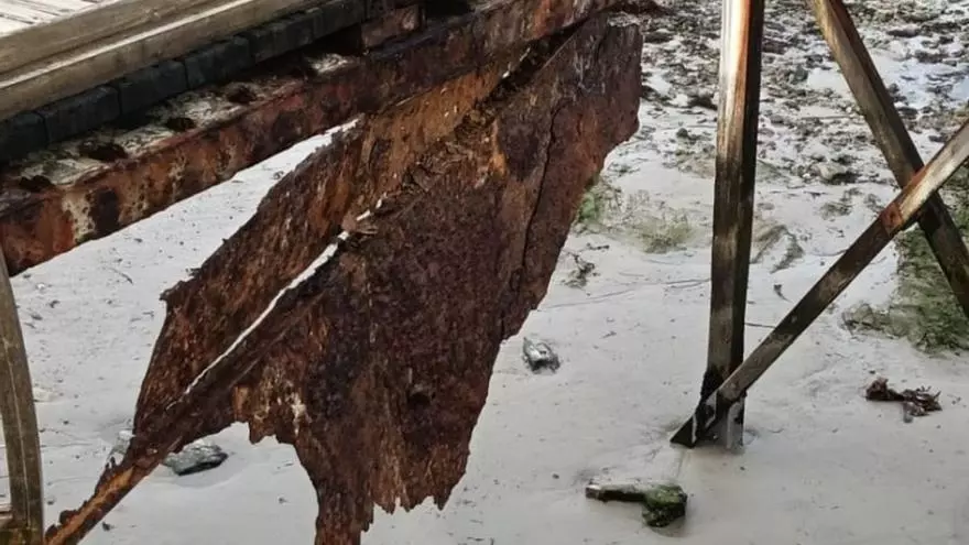 La degradación de la pasarela del castillo de Santa Cruz continúa con el desprendimiento de una lámina hierro. El Concello de Oleiros ha demandado acciones urgentes por parte del Ministerio de Transición Ecológica para arreglar el paseo.
