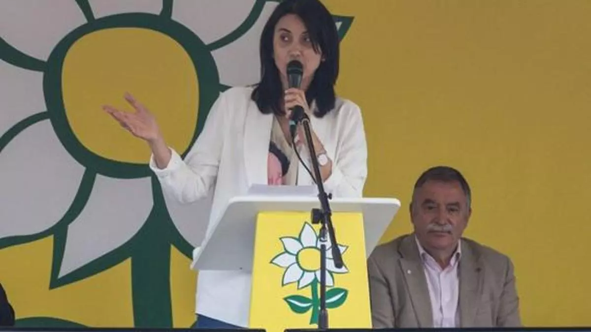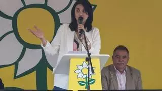 La portavoz de Alternativa en Sada, María Nogareda, en un acto de campaña con García Seoane al fondo. / Antares Pérez
